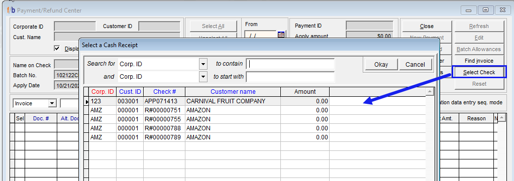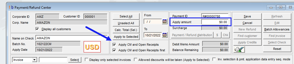 This Zero- Dollar Payment Method allows the user to launch the Payment/Refund Center Screen from batch details to view the details and make changes to the applied credit memos.